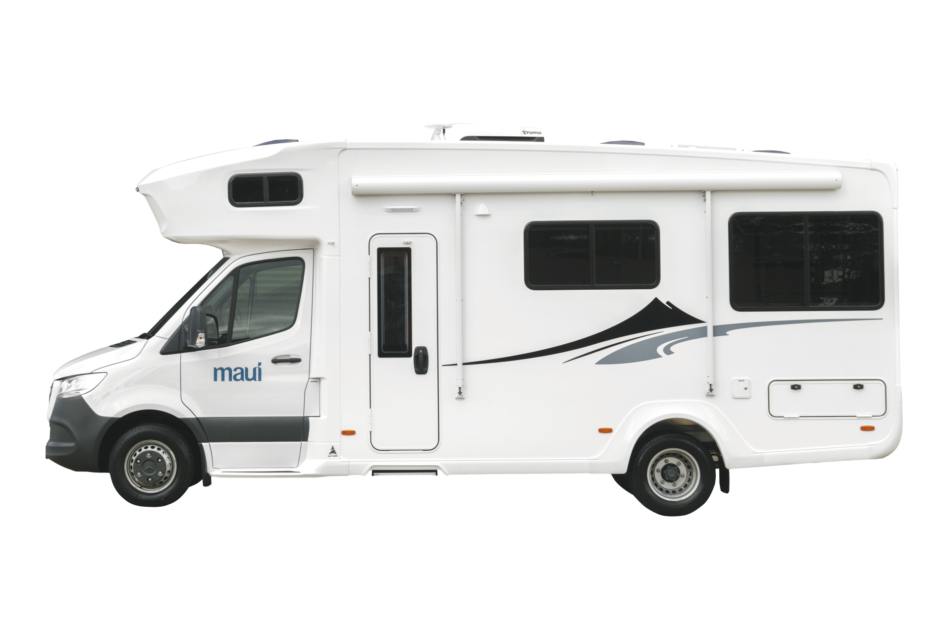 Das zweite 6-Bett-Wohnmobil in der Maui-Flotte. Gebaut in Neuseeland, etwas kompakter aber genau so komfortabel wie das in Australien produzierte Modell Maui River. Und ebenfalls ausgestattet mit zwei Sitzgruppen und drei Doppelbetten - maximal für 4 Erwachsene und 2 Kinder.