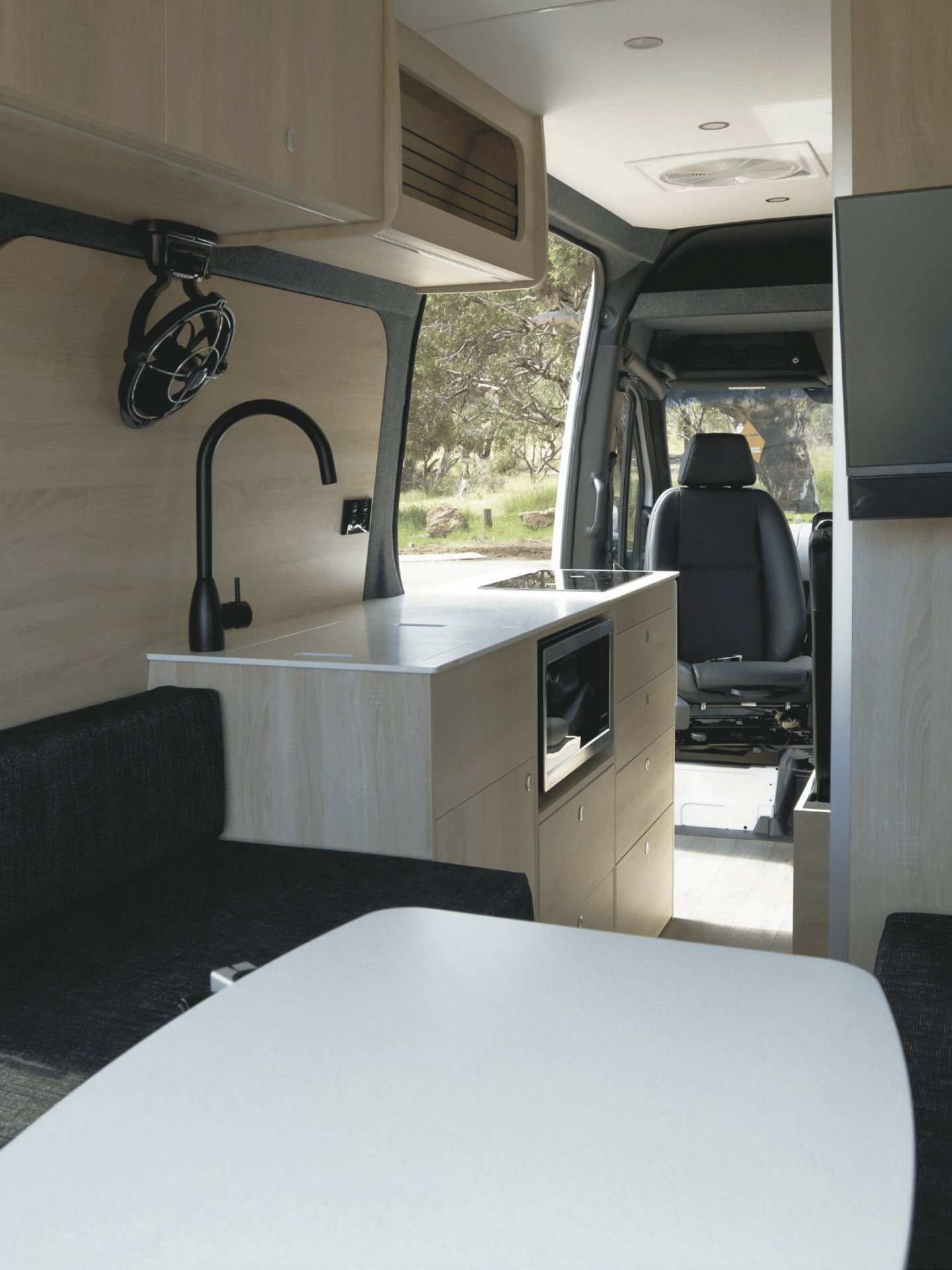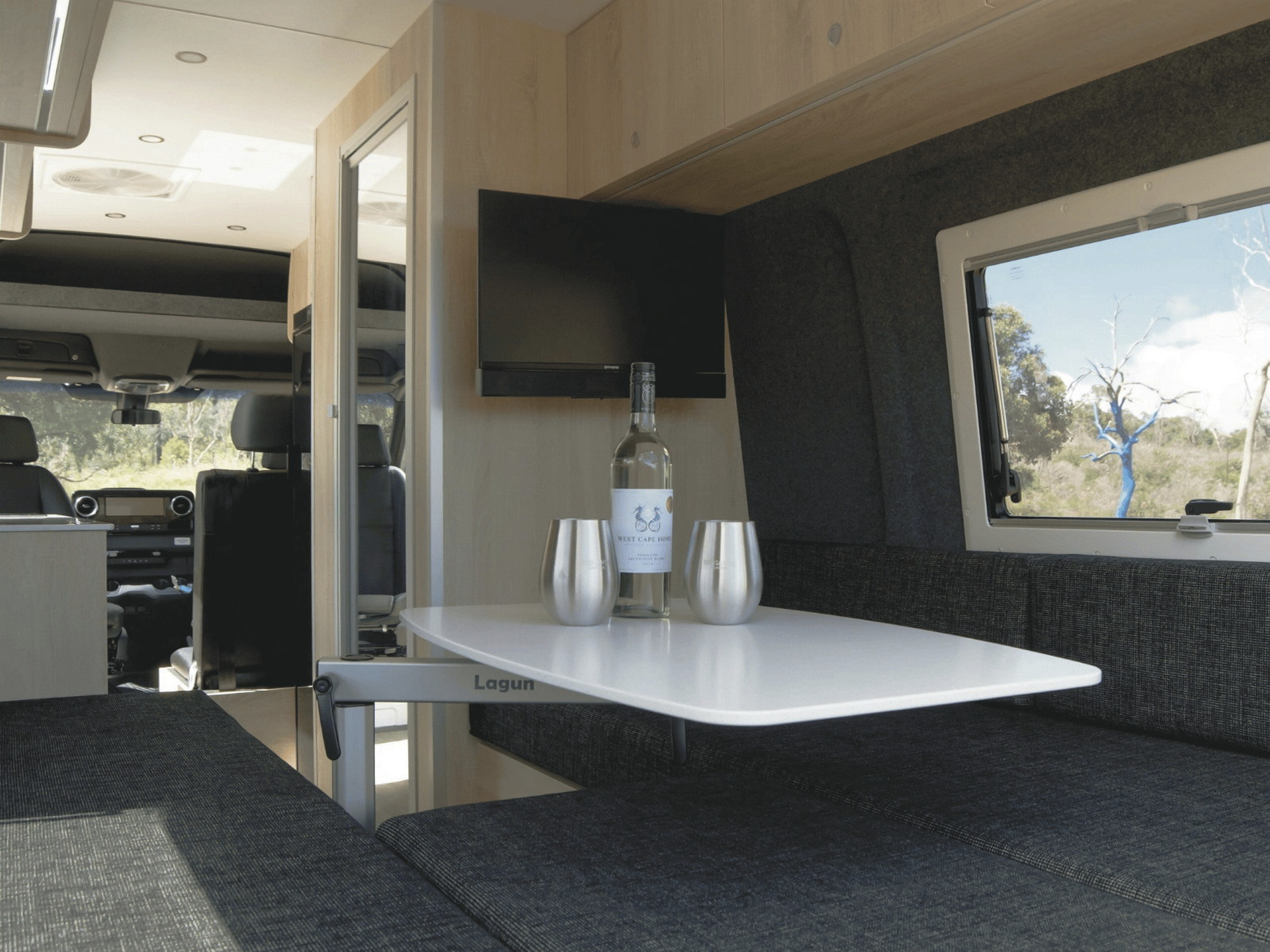 Ab September 2026 verfügbar: The Frontier. Der gut ausgestattete Premium-Camper glänzt mit einer intelligenten Raumaufteilung, hochwertigem Interieur und großzügigem Stauraum im Heck. Zur Ausstattung zählen ein großes und bequemes Bett sowie eine Nasszelle mit Dusche/WC. Ideal für 1-2 Reisende, die Komfort und Zuverlässigkeit suchen.