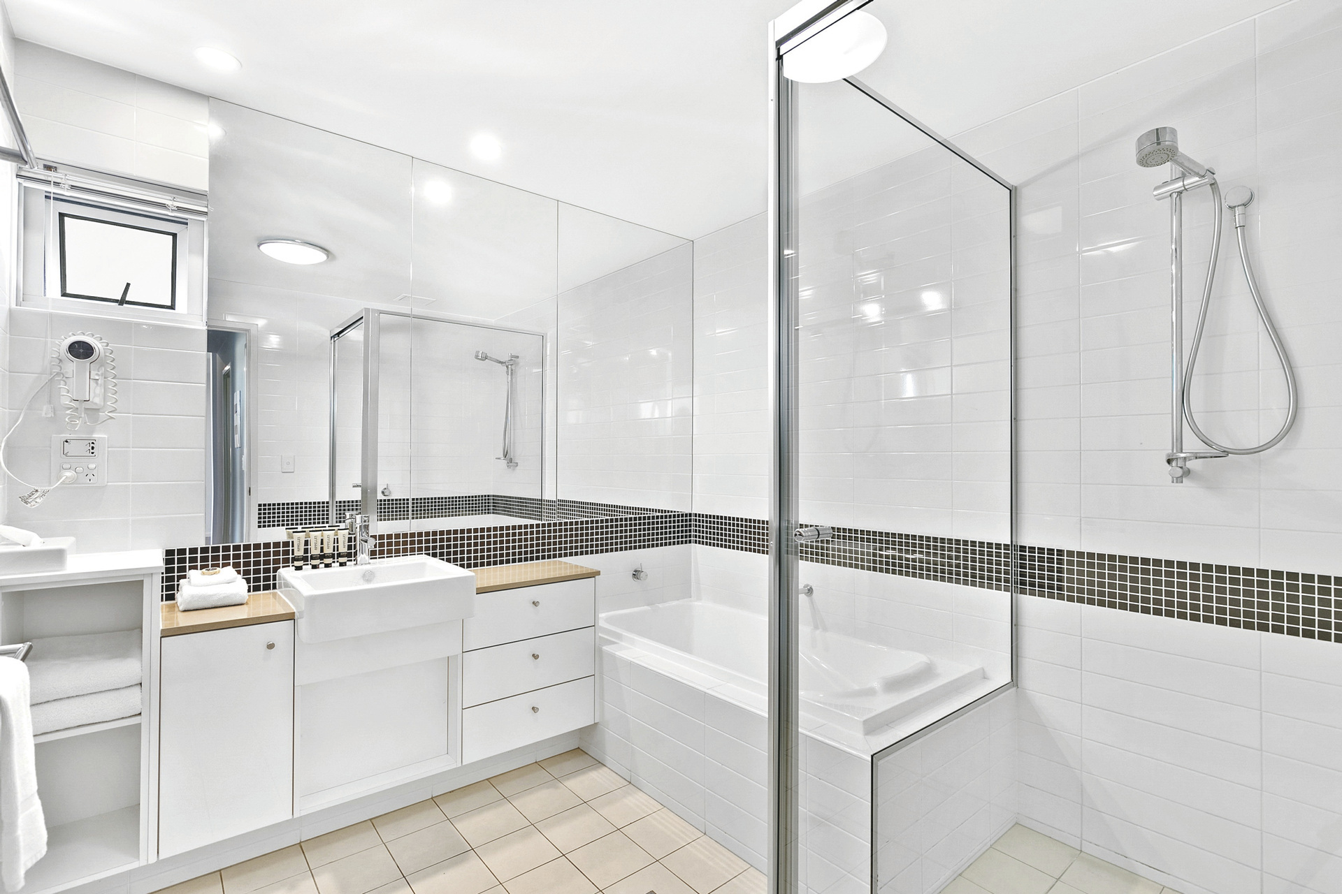 Die moderne, auf Selbstversorger ausgerichtete Apartment-Anlage verfügt über einen beheizbaren Außenpool, einen Whirlpool sowie einen BBQ-Bereich. WLAN ist kostenfrei verfügbar, ebenso wie Parkplätze in der hauseigenen Tiefgarage. Die Rezeption ist Montags bis Freitags von 8.30 bis 16.30 Uhr besetzt, an Wochenenden von 9.00 bis 12.00 Uhr.