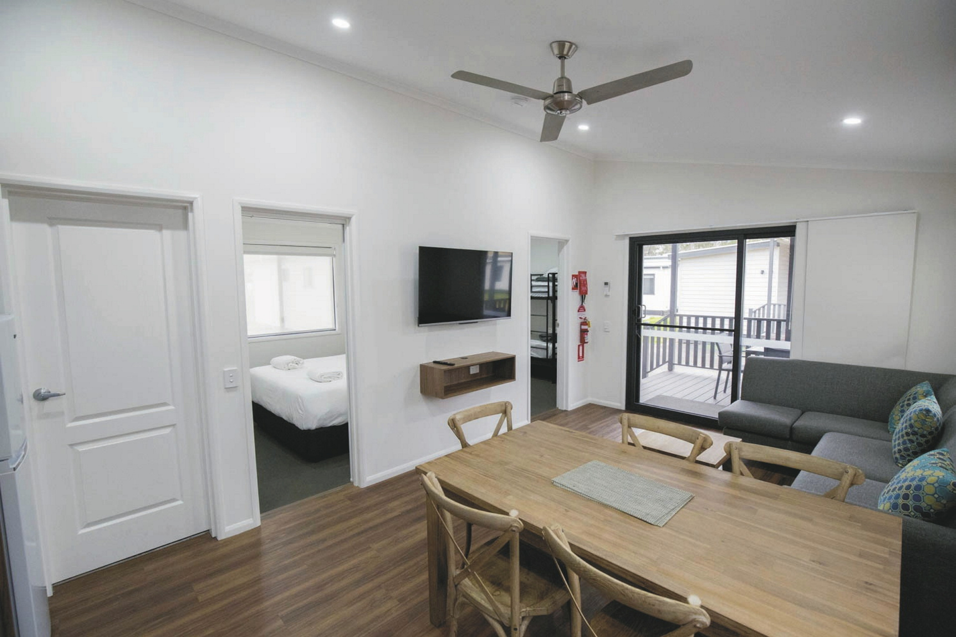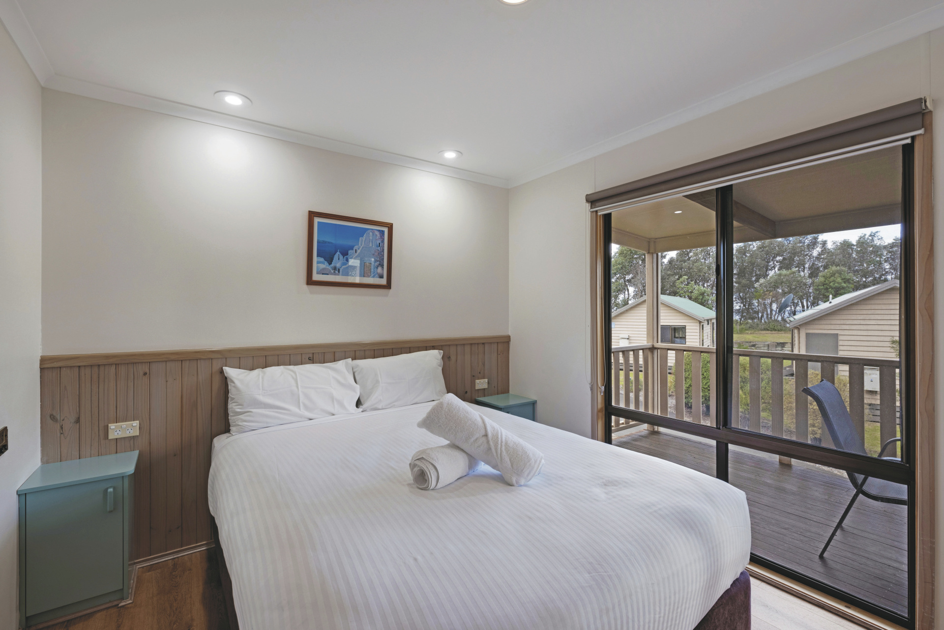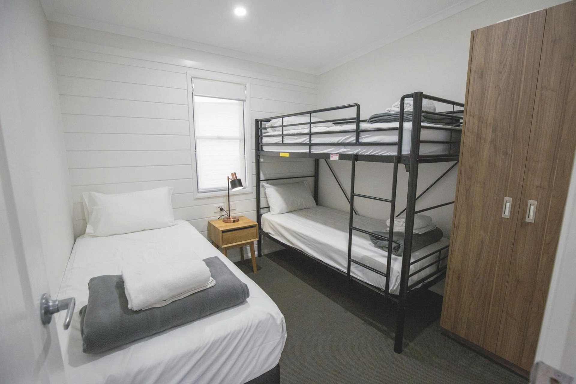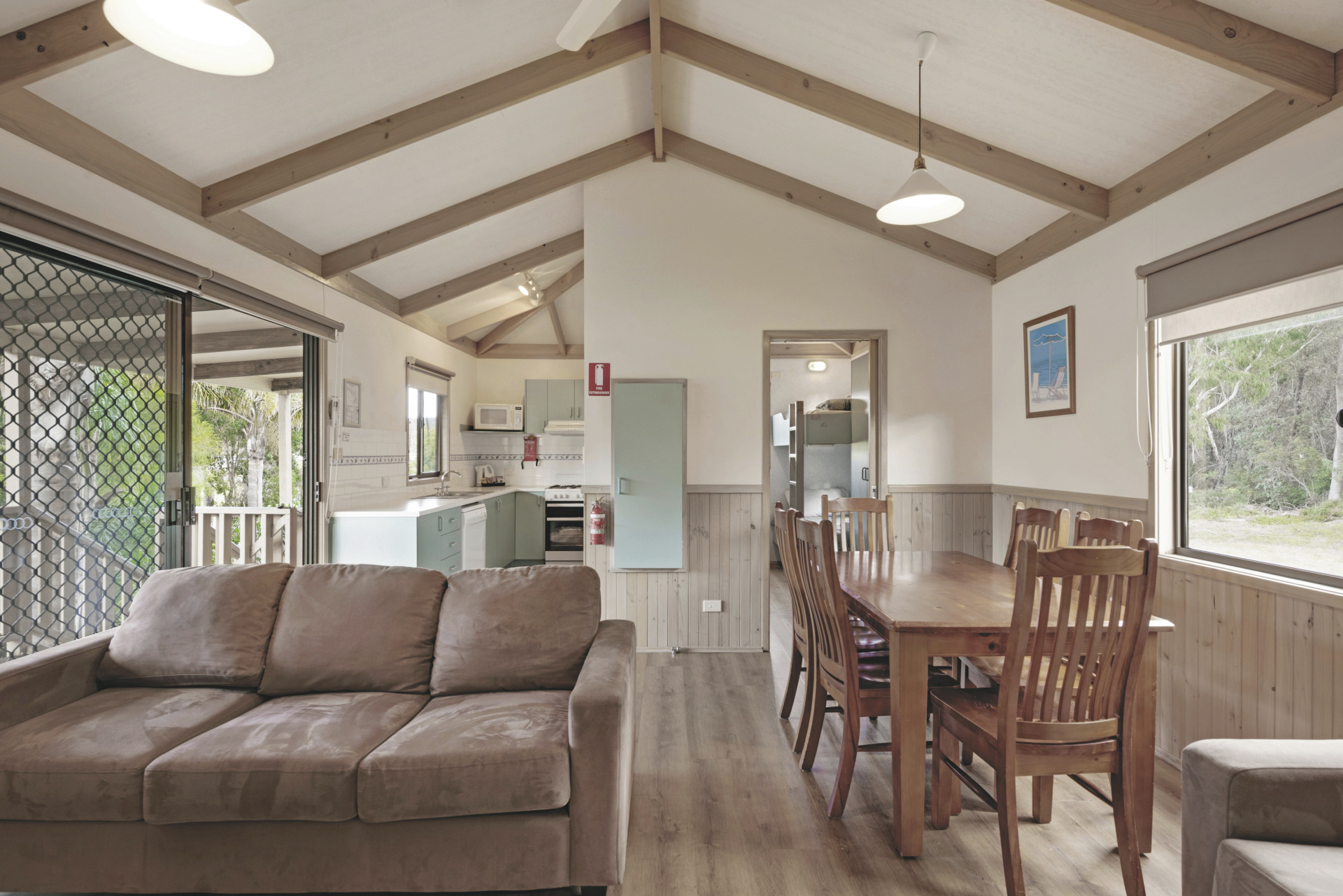 Discovery Parks Eden bietet verschiedene Unterkünfte, darunter Superior 2 Bedroom Cabins und Deluxe 2 Bedroom Cabins mit ausreichend Platz für einen komfortablen Aufenthalt. Beide Kategorien verfügen über je ein Elternschlafzimmer mit Doppelbett und ein Kinderschlafzimmer mit Stockbetten sowie einen Wohn- und Essbereich. Zur Ausstattung zählen ein Badezimmer mit Dusche/WC sowie eine gut ausgestattete Küche. Die Deluxe 2 Bedroom Cabin bietet zusätzlich eine Spülmaschine und eine Klimaanlage mit Heizfunktion.
