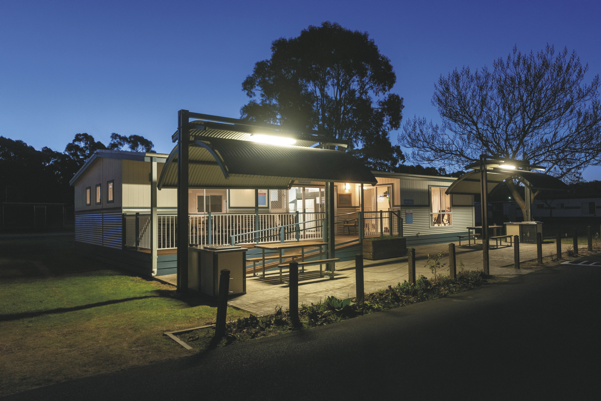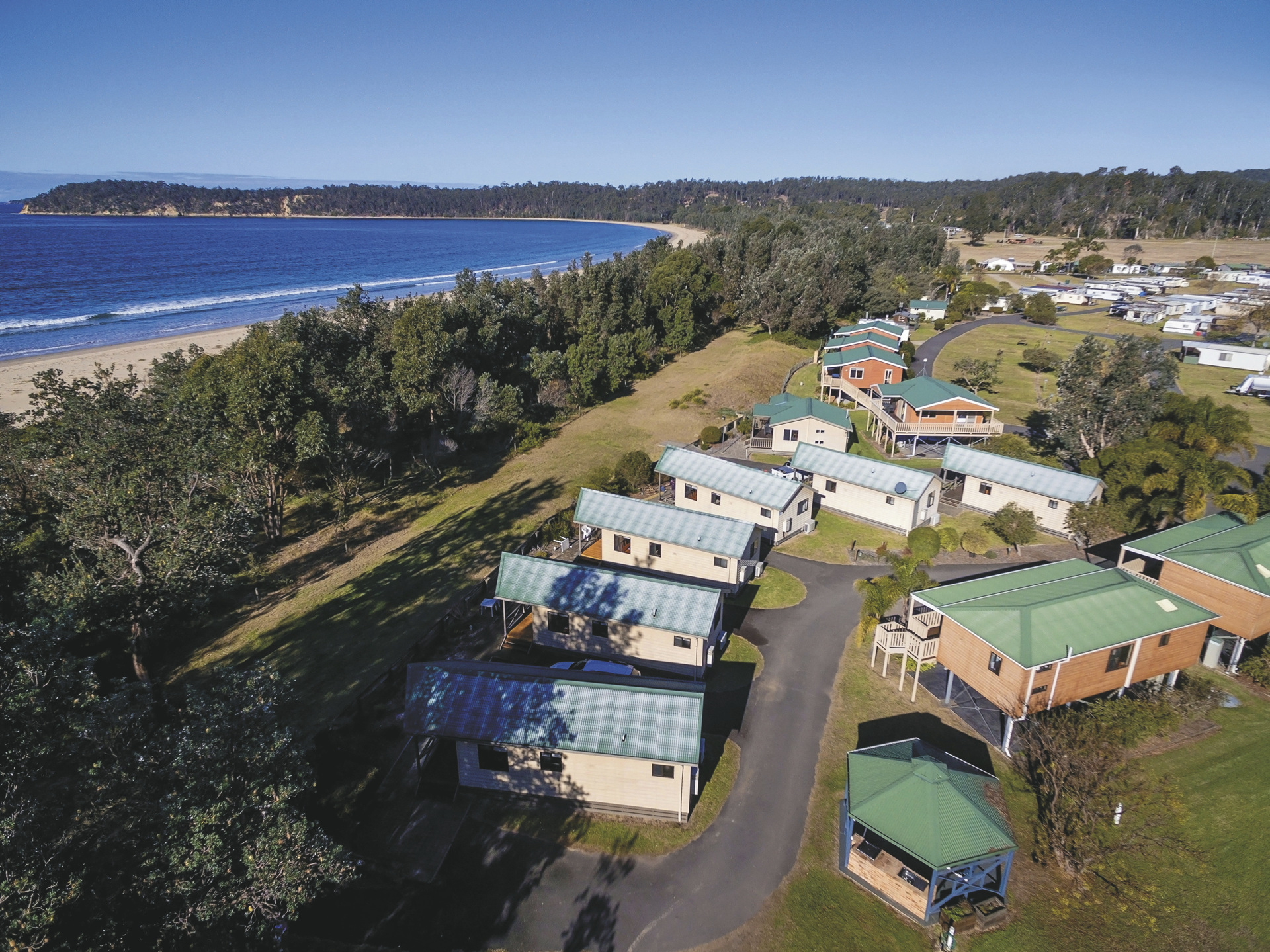 Die Anlage präsentiert sich in ruhiger Küstenlage mit ungezwungener, familienfreundlicher Atmosphäre. Es gibt sowohl Campingplätze wie auch Mietunterkünfte. Allen Gästen steht ein Swimmingpool im Resortstil sowie ein Münzwaschsalon zur Verfügung. Für die Selbstversorgung gibt es BBQ-Bereiche und eine moderne Camp Kitchen, für Familien einen Spielplatz. Der Ort Eden mit weiteren Geschäften, Restaurants sowie dem Killer Whale Museum sind gut erreichbar, ebenso der nahegelegene Beowa National Park.
